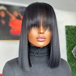 Wear and Go Straight Human Hair Wigs with Bangs Virgin Brazilian Human Hair Wig for Black Women Long Fringe Bang Wigs Glueless